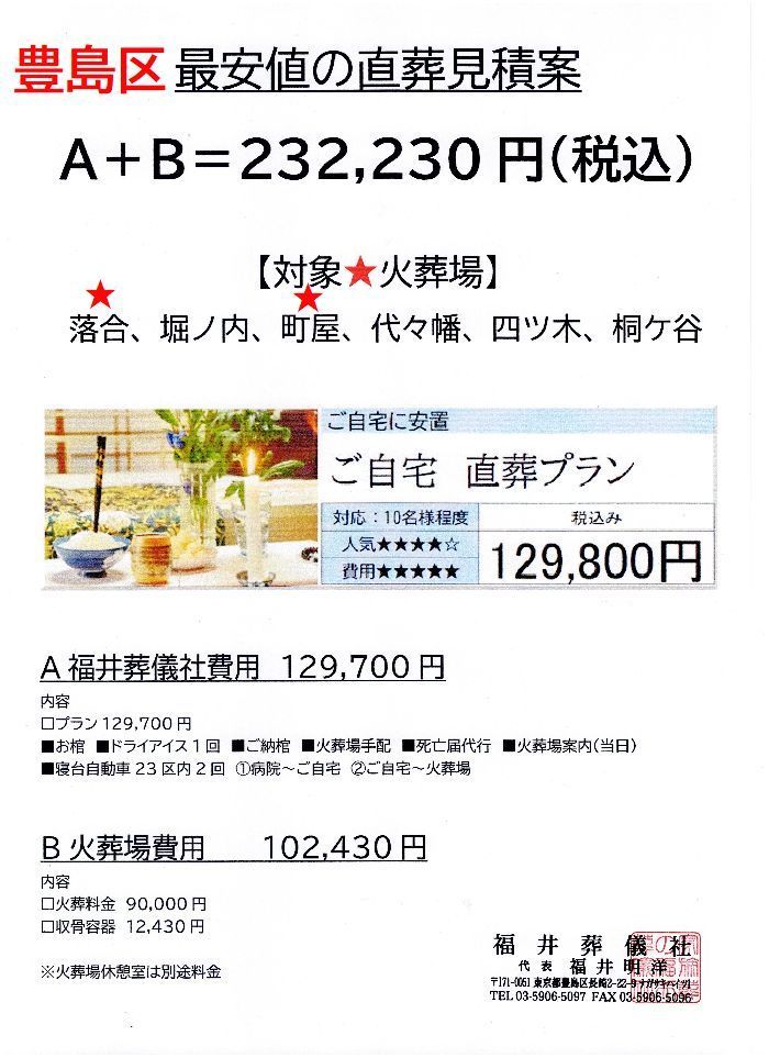 都内最安値の火葬見積です。この価格帯で直葬ができるのは都内で3社程度。ご参考にしてください。