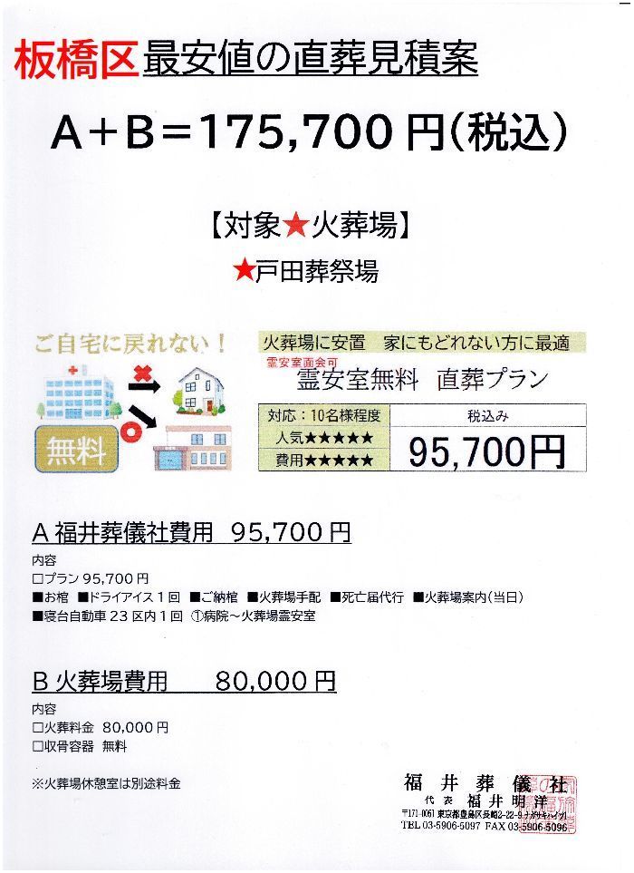 都内最安値の火葬見積です。この価格帯で直葬ができるのは都内で3社程度。ご参考にしてください。